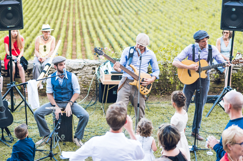 Having performed at numerous events and weddings in Bordeaux and across France, this live swing trio has entertained both small and large audiences. Willing to adapt to different performance spaces, whether indoors or outdoors, our wedding band from Bordeaux is the perfect choice for a garden reception or an outdoor festival.