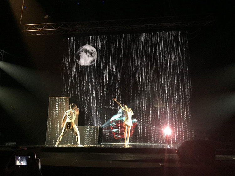 As performers vanish from view by stepping through the water screen and reappear to the audience, watch as your guests applaud and are left completely astonished by the brilliance of our dancers and team of water screen projection and video mapping specialists.