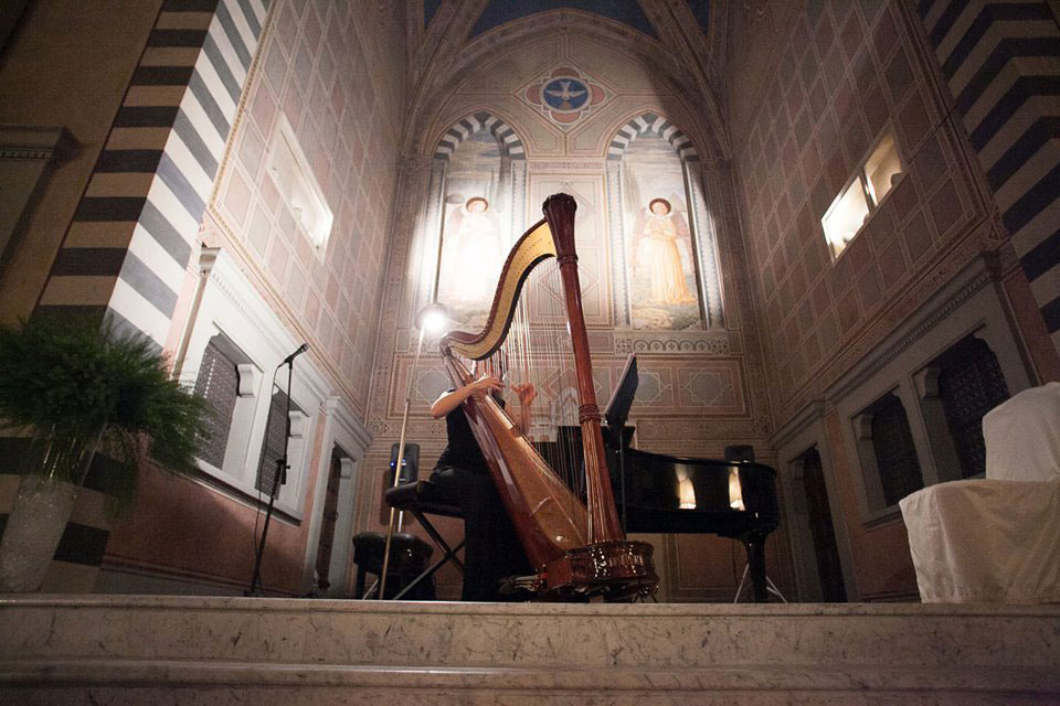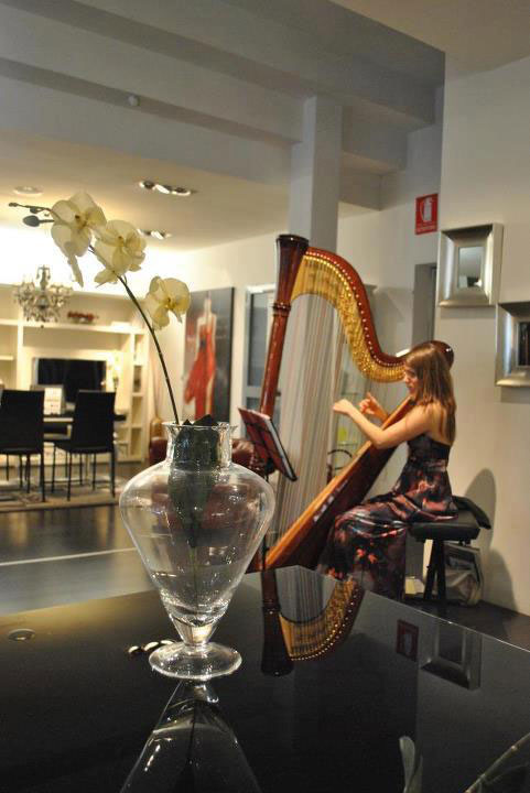 Available for hire as a solo musician, our skilled female harpist can also perform in various ensembles, including with a violinist, a flautist, a singer, or a saxophonist (perfect for festival entertainment).