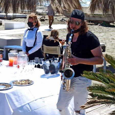 Playing smooth and lively tunes, our saxophonist sets a wonderful ambiance during the day and gets your guests dancing at night.
