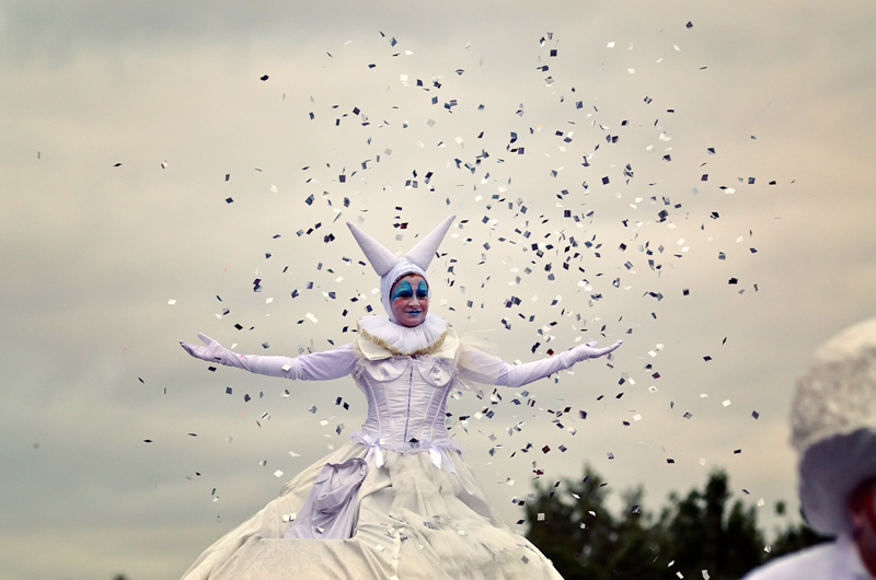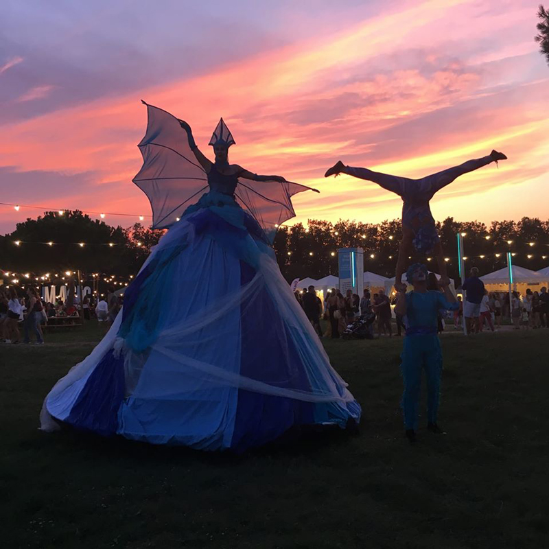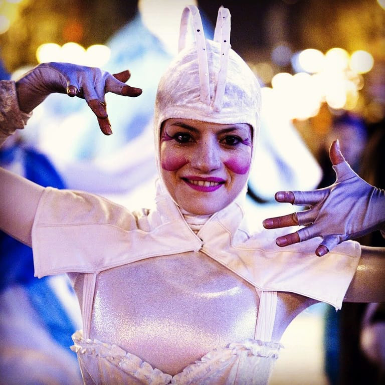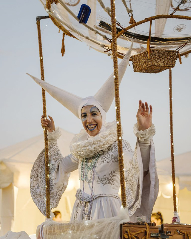 You can book this sensational circus parade with a vintage hot air balloon carriage adorned with twinkling LED lights. Ideal for Christmas events, festivals, and themed parties, our white circus act is a popular choice for evening events.