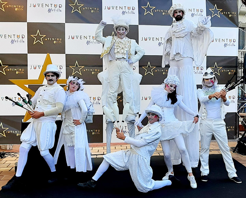 Adaptable to both indoor and outdoor performance spaces, our interactive circus act is perfect for events of all kinds and sizes. Loved by children and adults alike, this white parade is the ideal option for big family events, shopping malls, Reyes parades, and more!