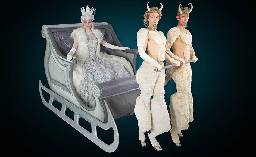 With the choice of either fauns or reindeer on stilts to accompany her sleigh, this creates a perfect photo opportunity for your guests.