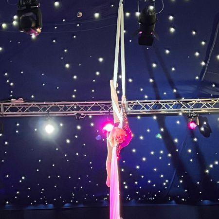 Our aerialists' 1920s shows include aerial silks, trapeze, hoop and Spanish web, as well as beautifully sparkling costumes to round off the theme