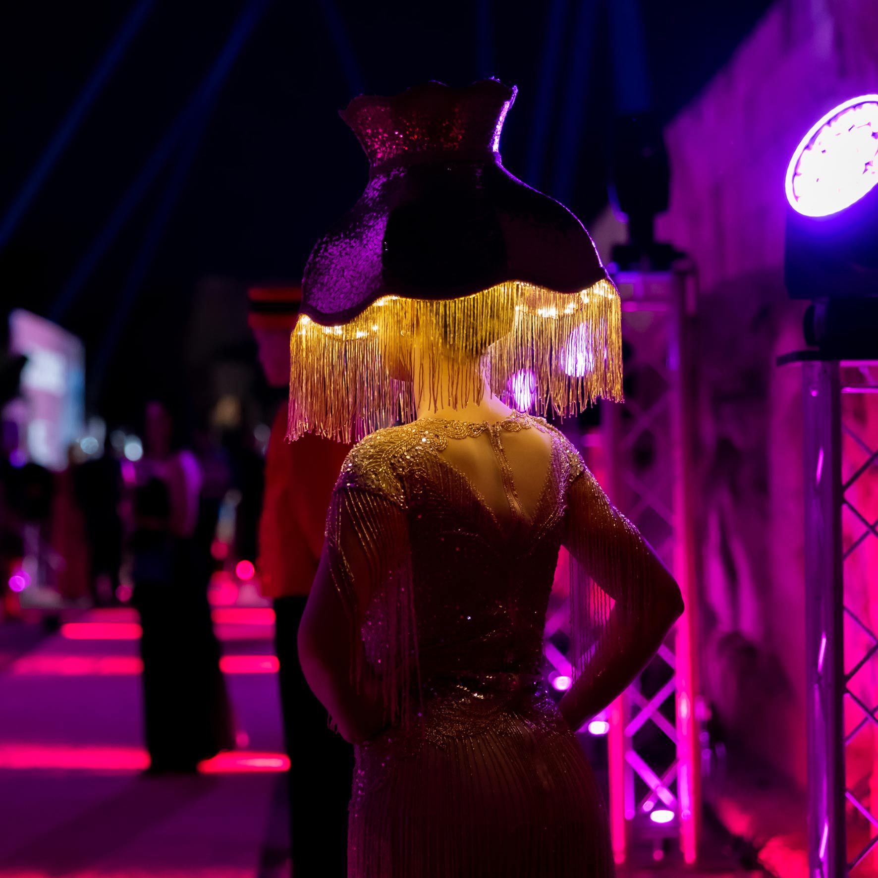 Our line-up of roaming performers can include birdcage girls, a champagne-pouring aerialist, an acrobatic duo, champagne dresses and living lamps