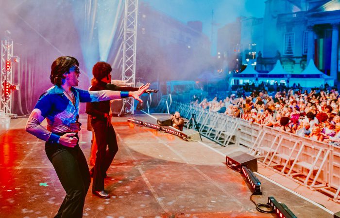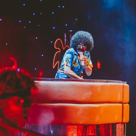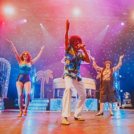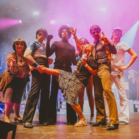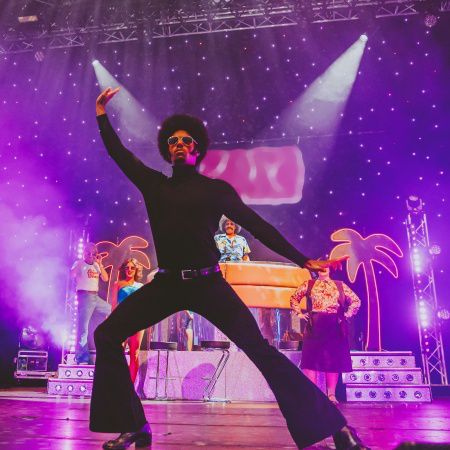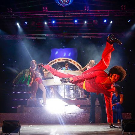 Experience 70s nostalgia in our immersive stage show, merging theatre, concert, and club atmospheres into a spectacular journey to the disco era