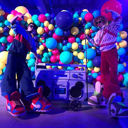 Professional circus performers, these 90s themed characters provide a fantastic visual spectacle on their bouncing stilts, as well as supplying hilarious interactive entertainment as they attempt to teach passers-by their secret handshake and encourage them to dance along to the music pumping from their giant boombox.
