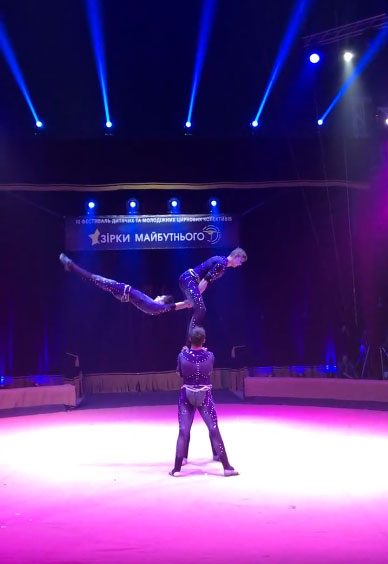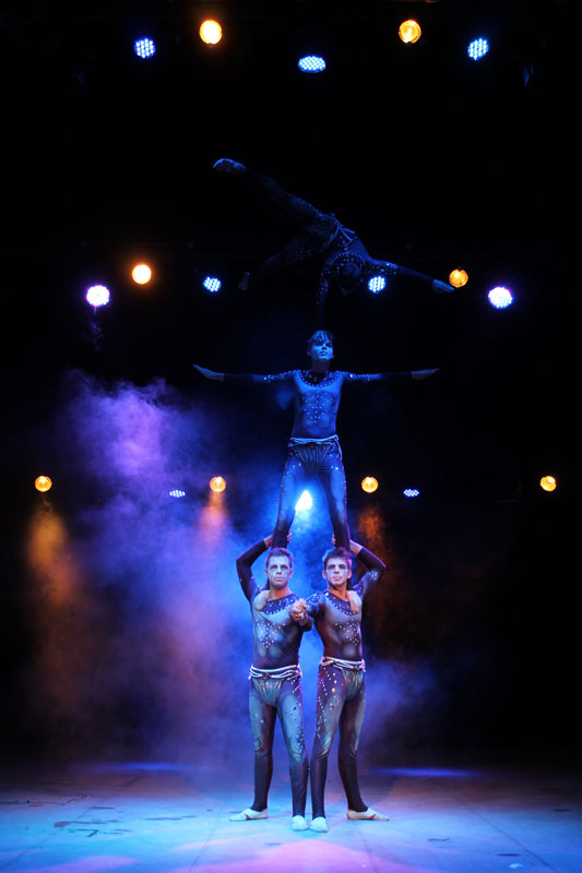 This group of experienced circus performers are very passionate about circus in general and acrobalance in particular. Acrobalance is a circus discipline that combines elements from adagio and hand balancing, resulting in an extraordinary display of physical strength and flawless technique. A physically demanding performance, this circus show also involves great agility and high doses of concentration to perform the seemingly impossible positions, impressive gymnastic tricks and mind-blowing moves that shape and mould their choreography.