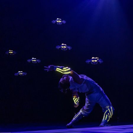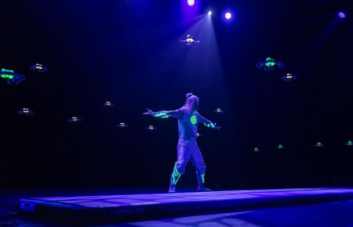This innovative live show will bring instant wow factor and the world's first to utilise LED drones to form shapes that our acrobat can flip through