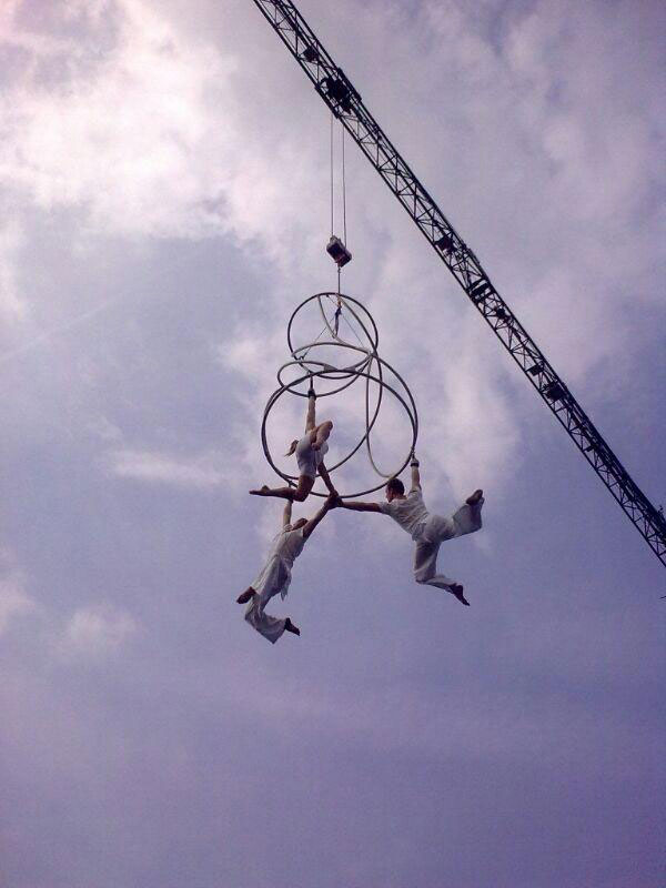 Unusual abstract metal structures make a unique aerial performance