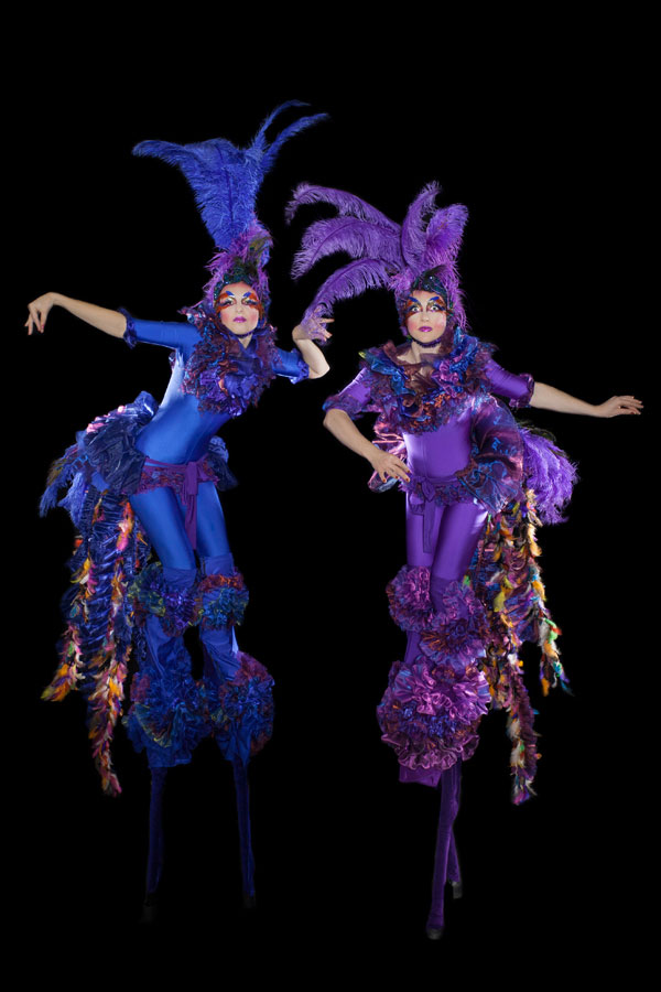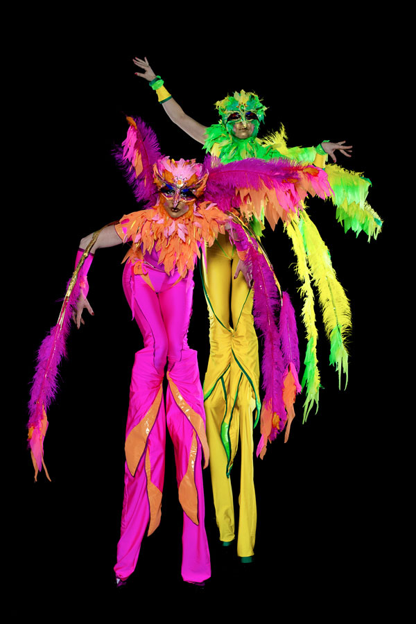 Clients can choose between rich royal purple or vibrant brightly coloured feathered birds to suit your event. Whether you’re looking for an elegant aesthetic or a carnivalesque atmosphere, these stunning performers provide exquisite entertainment that is sure to impress. Each act is available as an aerial or stilt performance.