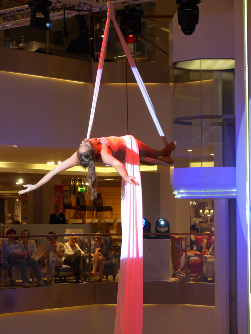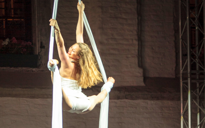 Our skilled aerial performer is can perform using aerial straps, silks and vertical tissue; plus trapeze, dance trapeze and acrobatics