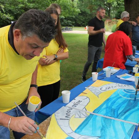 Armed with brushes and paint, everyone is divided into small teams to ensure they recreate an image as accurately as possible