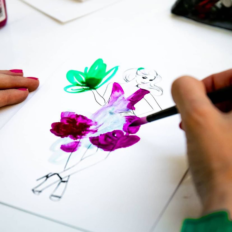 Our talented artist is known for her delicate linework, large scale watercolours and pops of bright colour