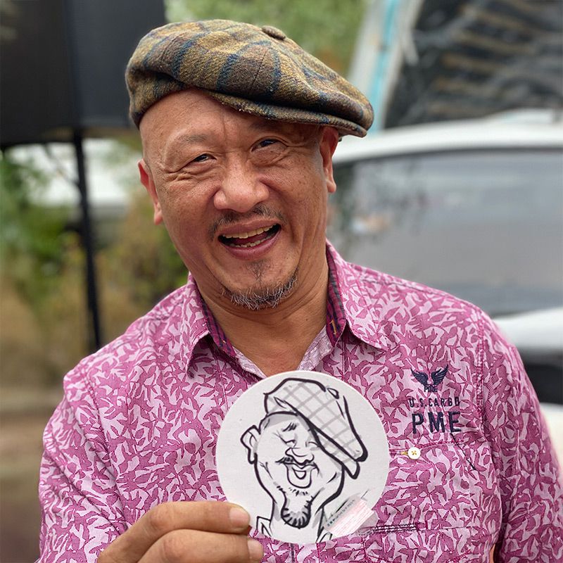 This caricaturist entertains while drawing, drawing crowds and attention, with coasters that spark laughter and engagement