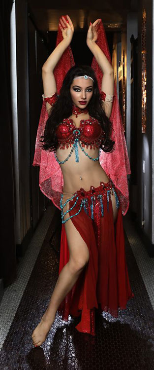 Using props to illustrate her performances our belly dancer can perform with; swords, finger cymbals, candle tray, fan veils, wings, cane, candelabra and feather fans. In addition to fire eating, and performing with fire props such as fire fans, fire belt, fire torches, palm candles and a fire bowl that is exclusive to our belly dancer's act, ensuring that your guests experience a new and exciting performance that has never been seen before.