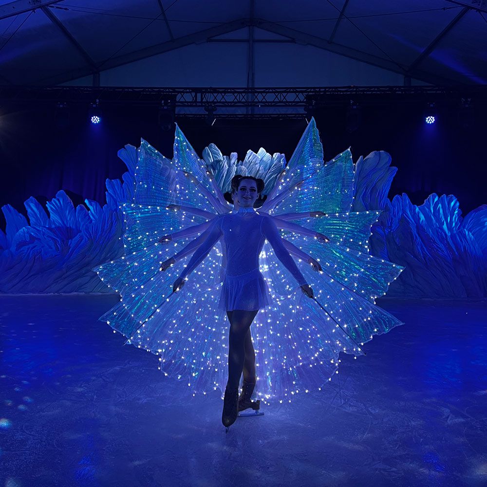 Able to perform ice skating shows on real ice as well as synthetic ice, our professional ice skaters can create custom ice products and bespoke ice shows catering to any theme, event type and venue. Their use of synthetic ice allows a versatility not afforded by real ice; in a garden, on a beach, in the desert, on a swimming pool, on top of a structure… they can construct their ice rink anywhere! Adapting and tailoring costumes, choreography, music, backdrops and much more to suit your needs, they will ensure an ice show unique to your event.