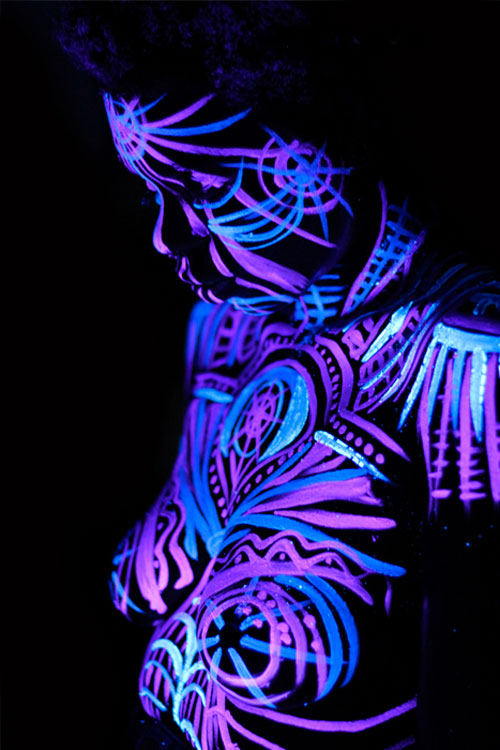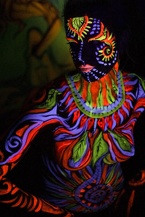 Hire our body painter for your Halloween event and watch as your guests are transformed into glowing creatures that get everyone talking.