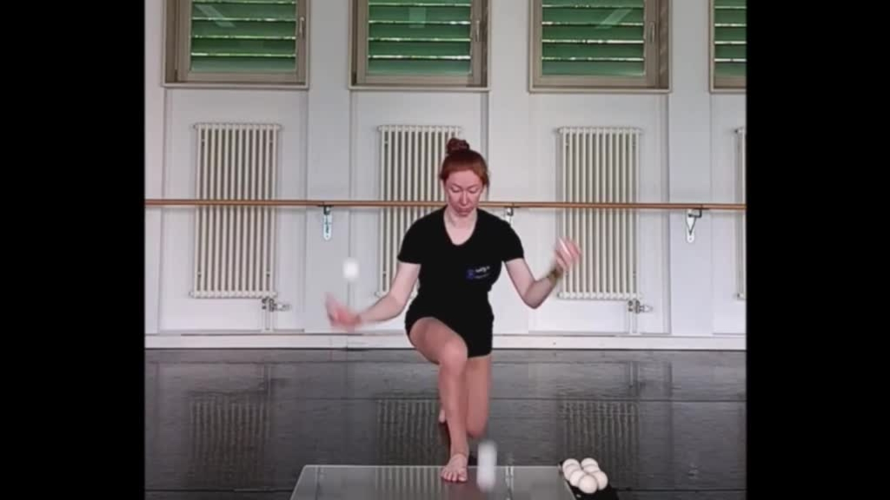 Try to keep up with our circus artist as she seemingly effortlessly bounce juggles multiple balls at once while keeping a smile the entire time