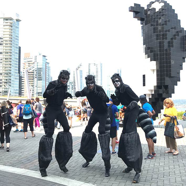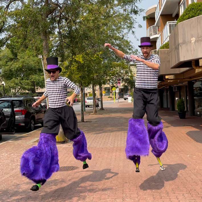 Bouncing up to 12 feet into the air, our stilt characters areĀ a guaranteed eye-catcher and conversation starter among guests