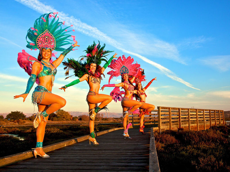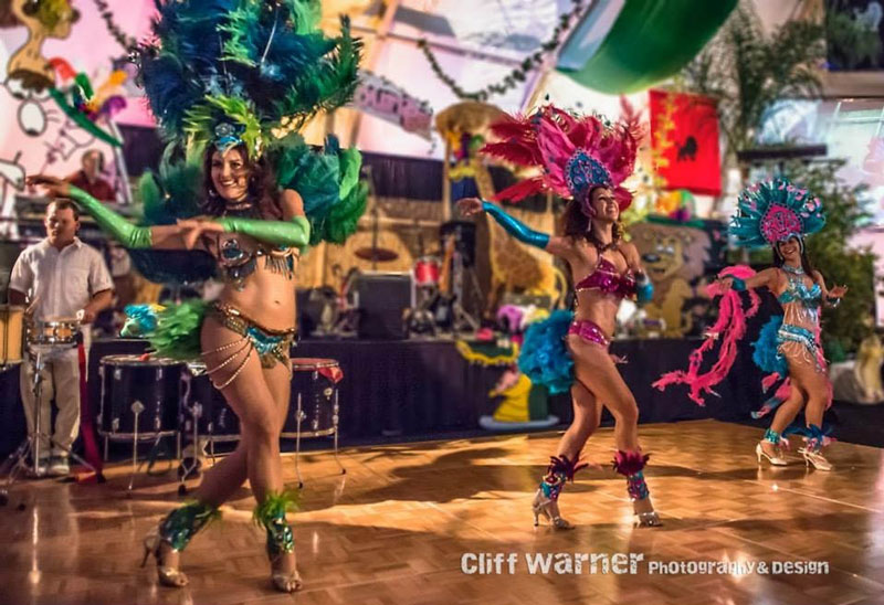 Our company’s Latin dancers are professionally trained with formal backgrounds in jazz, ballet, salsa, ballroom, and more. This background allows our carnival dancers to deliver not only samba shows but also performances that showcase salsa dancing, fire dancing, hula, stilt dancing, folkloric dancing, African dancing, live drumming and more.