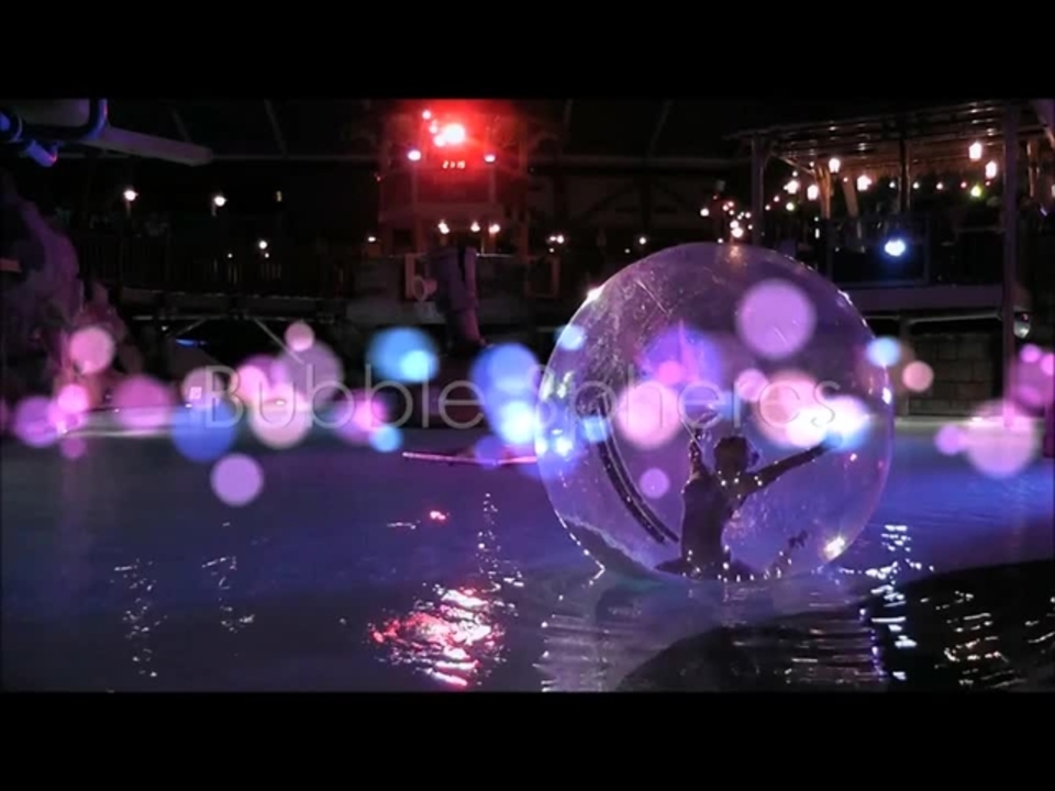 Performers can also perform a mixture of sets inside and outside the Bubble Spheres, such as a longer ambient pool performance within the Bubble Sphere and then a later a choreographed land performance or vice versa.