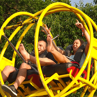 This Bungee Sphere ride launches two brave riders skyward at wild speeds, spinning and flipping for an unforgettable adrenaline rush