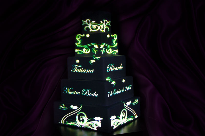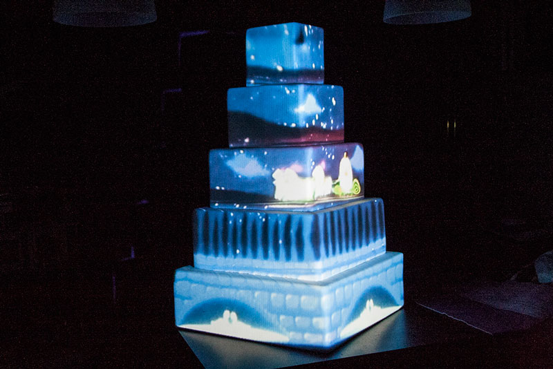 A lighting technique that has gained great popularity in recent years, 3D video mapping is an original way to add a unique visual element to any event. Our specialists in this technology now offer mapped wedding cakes, that is, bespoke visuals projected onto cakes. Especially spectacular under full darkness, projection mapping on cakes always create an immersive experience for your event or wedding guests!