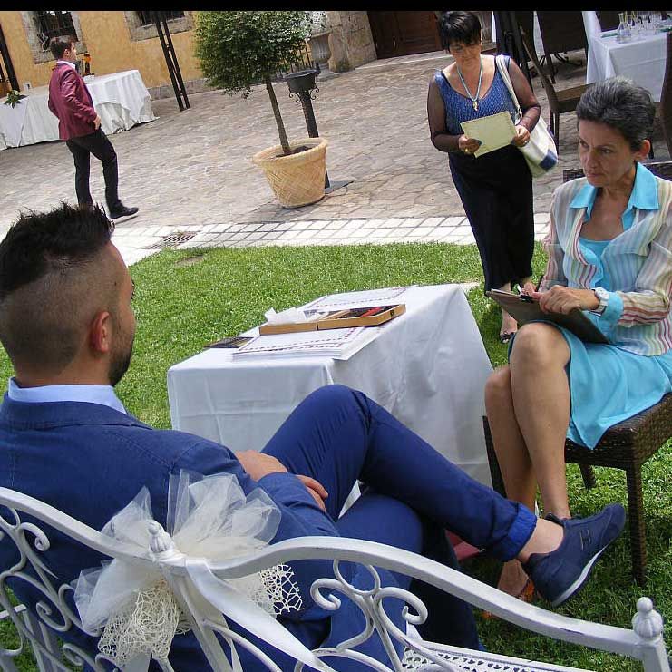 Our female artist creates pictures in pencil or pen, and are a great way to create interaction: they are loved by all age groups