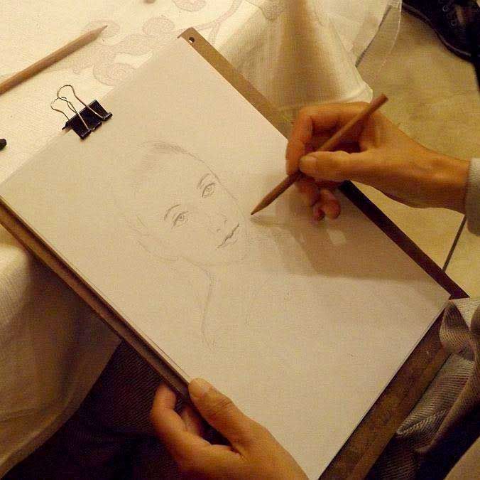 Based in Rome, our artist is able to travel and can also offer more detailed portraits in her studio setup; she will use a technique of your choice