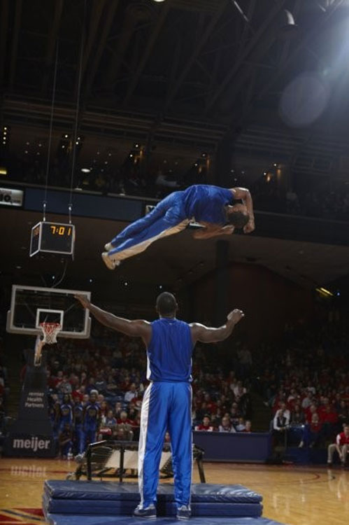 With a range of ages in their troupe, these acrobats jump over one another, using their smallest member as a human jump rope and creating jaw dropping challenges of catapulting themselves over the entire team!