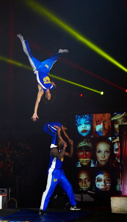 The perfect acrobatic team for any event that wants to get their crowds and audiences fired up these exciting acrobats burst onto the stage and keep the energy going from start to finish.