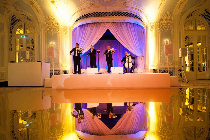 The ensemble’s Chill Out music has its roots in clubland chill out lounge music, taken to new heights by the use of a live string ensemble playing traditional classical instruments (or electric violins).