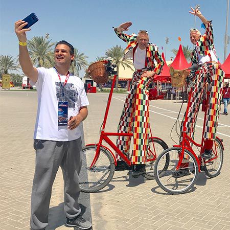 " [This Circus Skills Workshop] is one of our most popular acts that we’ve booked for every F1 since 2006. He always makes the audience leave with a smile. His amazing and creative costumes will definitely make any event successful. "