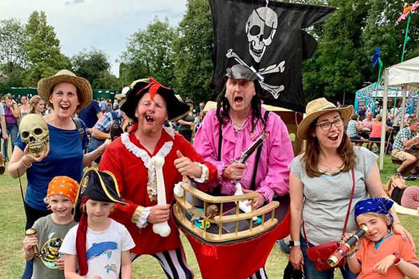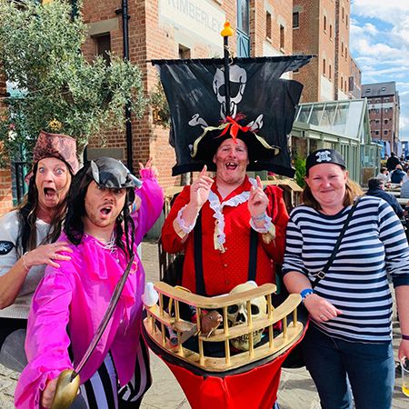 Sailing their small pirate ship among the crowds, these dastardly buccaneers bring sea shanties and chaos to themed events and parades