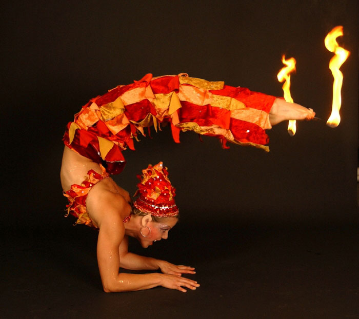 Fire Dance - An impressive sight, this show combines acrobatics and contortion for a striking visual spectacle, with Nicola performing fantastic routines whilst her feet hold lit torches, meaning she must move with precision and agility. This display also includes fire juggling, acrobatic lifts, and fire eating.