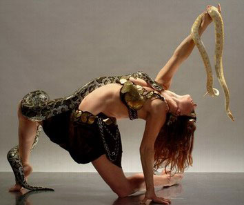 Snake Dance - Graceful and fluid like a serpent, Nicola performs incredible feats of contortion, demonstrating her amazing ability to bend and flex…all whilst draped with snakes! A fascinating display that seems to merge dancer and snake through graceful movement, this show also includes a walkabout performance after in which guests can pose with the snake.