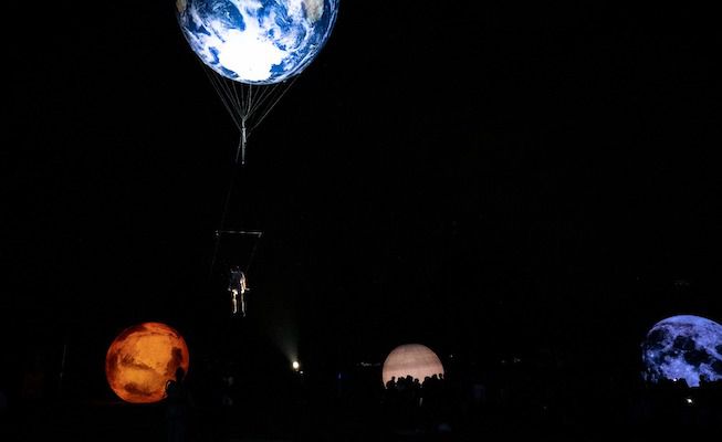 Showcasing the sun and all the planets of the solar system in varying sizes, the show explores themes of climate awareness and protecting our planet