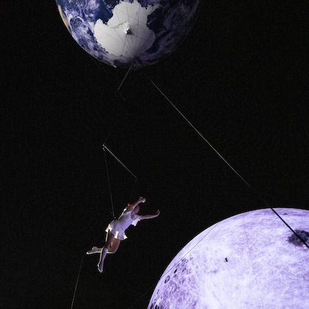 A highlight is an aerialist suspended from a 7m-wide “Earth” balloon, which is guided among the audience by stilt walkers and dancers on the ground