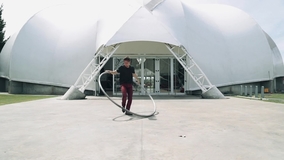 Perfect solo circus act for a wide range of occasions, our circus and street entertainer’s performances are suitable for street celebrations, festivals, private parties, theme parks and shopping malls, among others. This cyr wheel act is loved by spectators of all ages and it makes viewers of all sorts gather around to watch how our acrobat causes the wheel to roll whilst performing some incredible acrobatic moves.