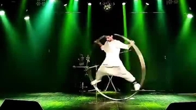 This Cyr wheel artist delivers a captivating display of balance, control and strength, spinning effortlessly across the stage at high speed