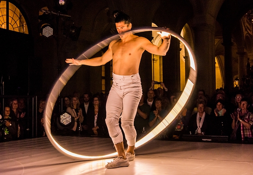 An impressive performance that will leave a lasting impression on all who witness it, the Cyr wheel show is a mix of different techniques; a fusion of the artist and an extension of the body which comes to life inside the wheel, demonstrating incredible acrobatic ability.