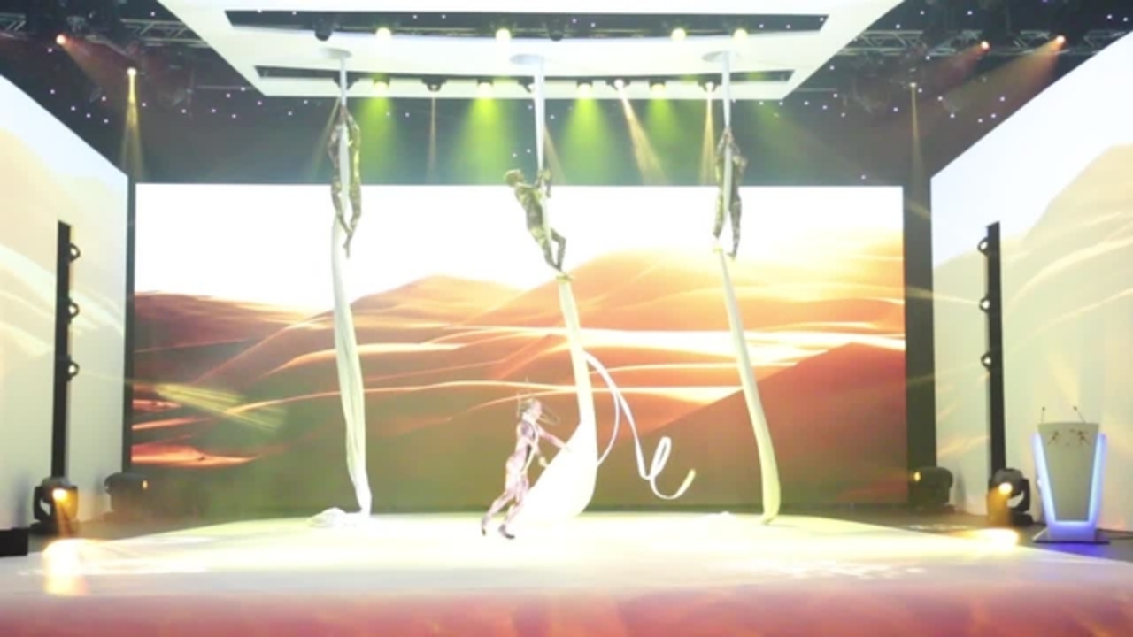 The stunning choreography includes: ballet dancers prancing and leaping across the stage like Gazelle, whilst the aerial performers drop down from high above. Adding a theatrical tone to any event!