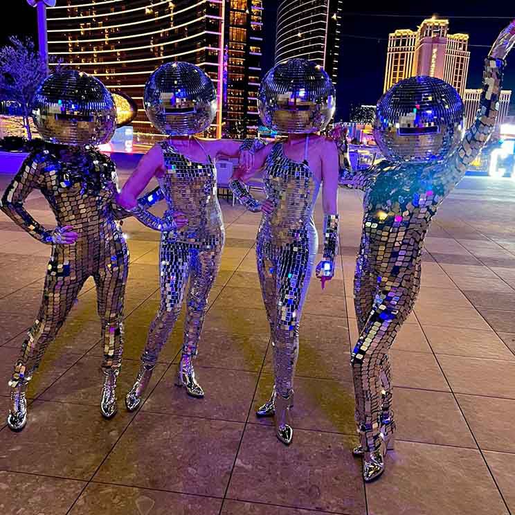 Based in Las Vegas, our Disco Ball Dancers can add a touch sparkle to your special occasion anywhere in the world