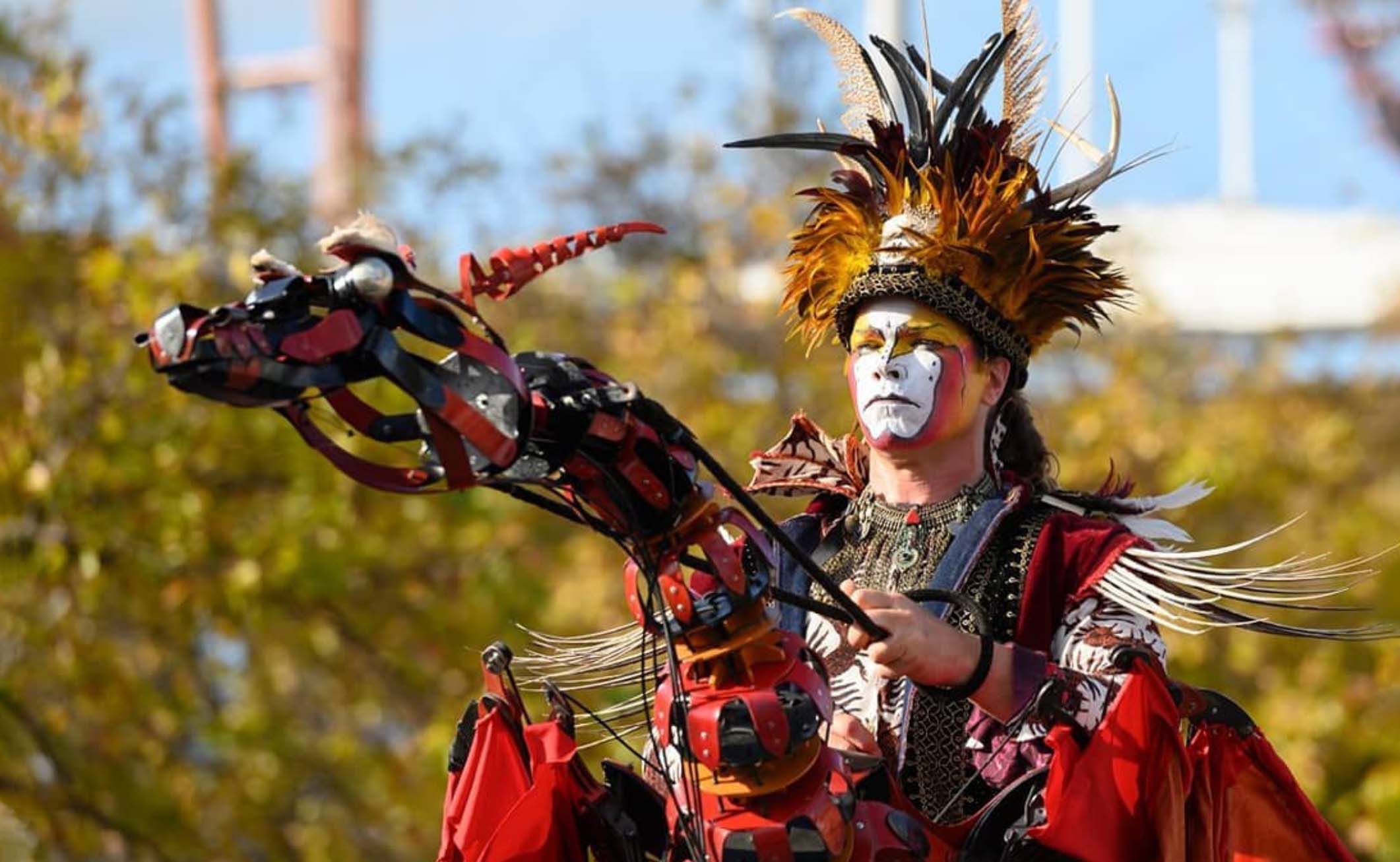 Based in San Diego, California, our dragon stilt walkers are available to book for events across the USA