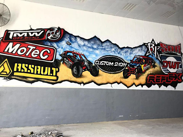 These amazing Dubai Graffiti Artists have worked on a broad range of events, venues and clients such as Ferrari World Abu Dhabi, DC Shoe Company, Shampooch UAE, YKM Store, Deals On Wheels UAE, Abu Dhabi German School, AtlasPark Shopping Centre and the America University of Sharjah. This has ranged from custom murals to retail and restaurant decoration all the way to altering clothing live in-store.