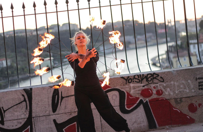 Clearly at one with her fiery props, our fire artist moves deftly beneath and midst her flames to create a stunning and mesmerising spectacle.
