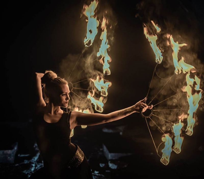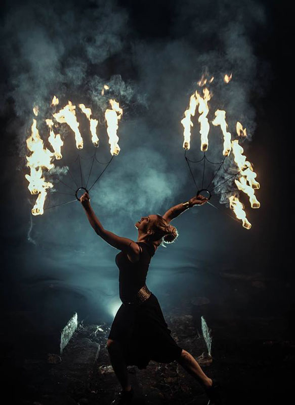 Fire acts are always an eye catching and unique way to grab attention and make a statement. Our fire poi and fire fan’s choreography makes no exception with plenty of daring twists, backwards bends, and graceful dance moves that make the most of the spectacular flaming props.