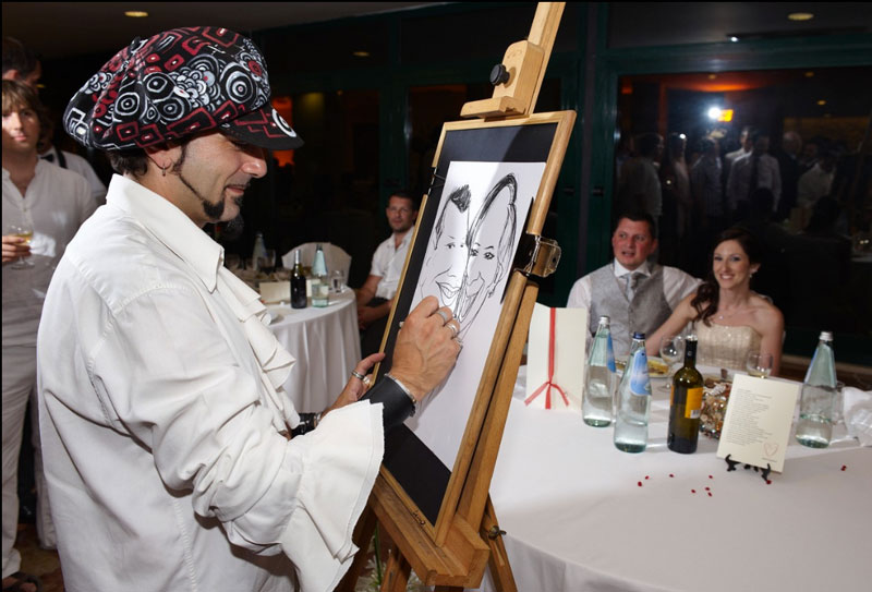 Live event caricatures can be an ideal way to provide guests at your wedding or event with an unforgettable memory that they can keep forever. Our Event Caricaturist from Palermo will make sure this is a reality by showing up at your party with his brushes, easel and paper ready to create some masterpieces.