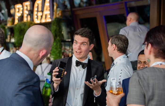 Combining card tricks, mentalism, and tricks using technology this magician has something up his sleeve for every guest